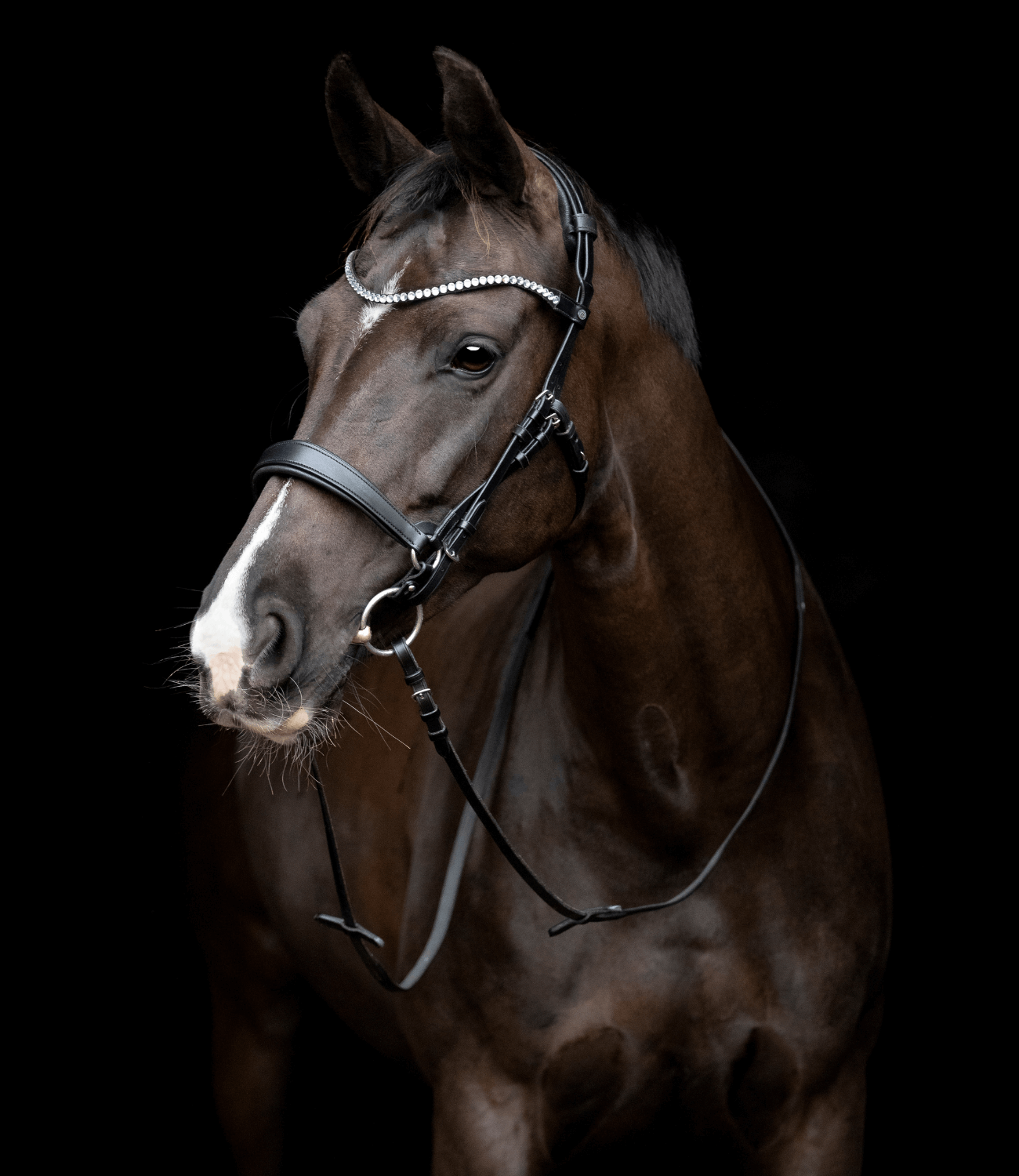 Har en beskyttende pude på midten, der løfter læderet væk fra alle de fine nerver og blodkar, der løber på siden af hestens næseryg. Næsebåndet løfter også kindstykkerne længere væk fra huden. Du kan vælge at sætte tøjlerne i næsebåndet, for at give hestens mund en pause.