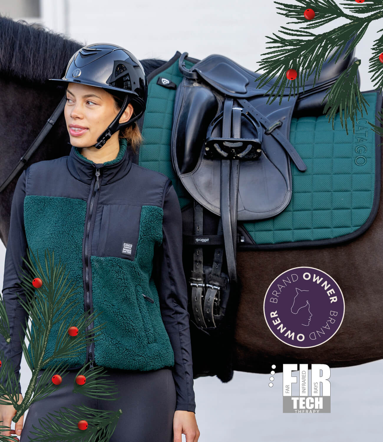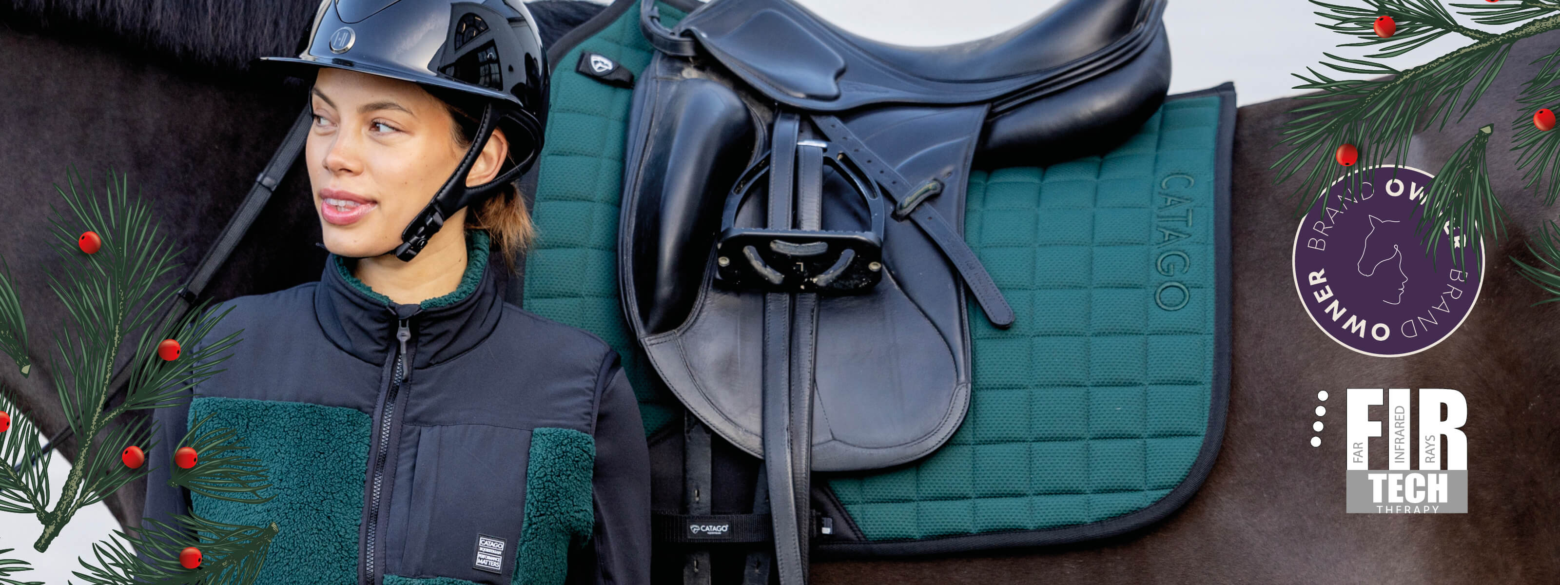 - FIR-Tech Gloves: Catago FIR-Tech handsker er åndbare, stærke og holdbare, med ekstra forstærkning i de områder, der er mest udsat for slid fra tøjlerne. Ideelle til alle discipliner med deres funktionelle og klassiske pasform. Handskerne er foret med det velkendte FIR-Tech materiale, som indeholder partikler af keramisk ler.