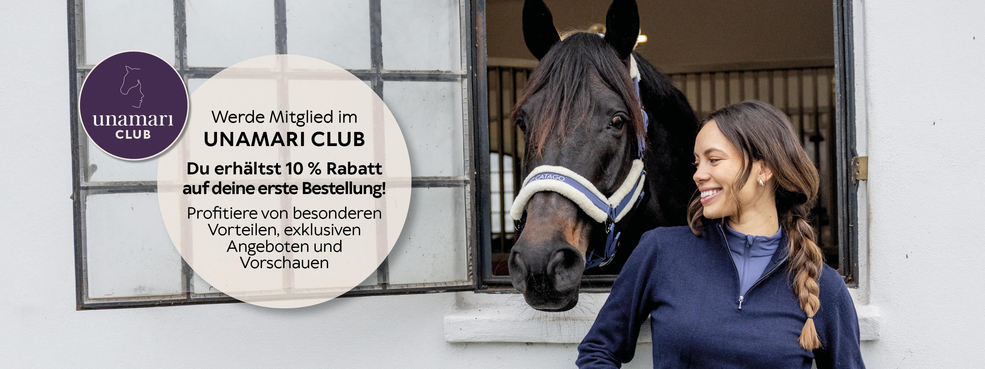 Verbunden durch die gemeinsame Leidenschaft für alles rund ums Reiten ist der Unamari Club ein besonderer Ort für Reiterinnen und Reiter wie dich. Und das Beste daran? Die Mitgliedschaft ist vollkommen kostenlos. Tritt jetzt bei und beginne, all die wunderbaren Vorteile zu genießen.