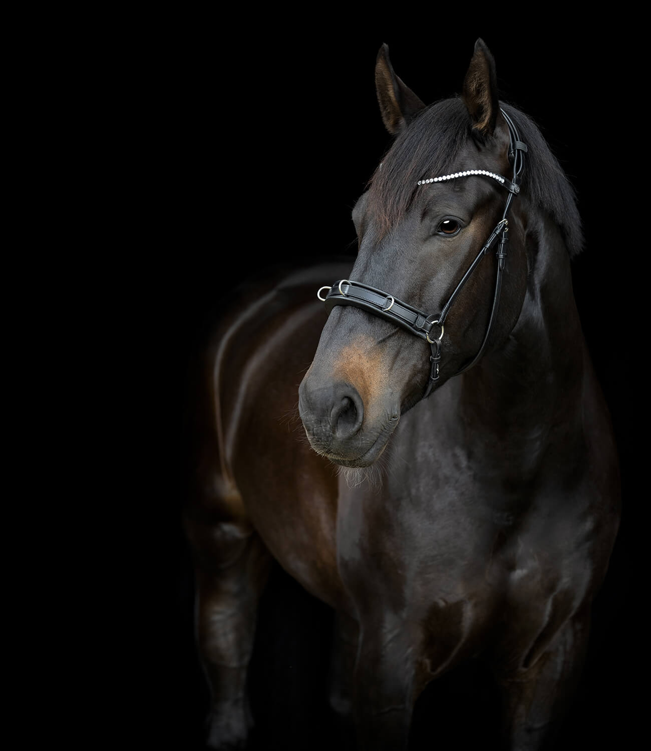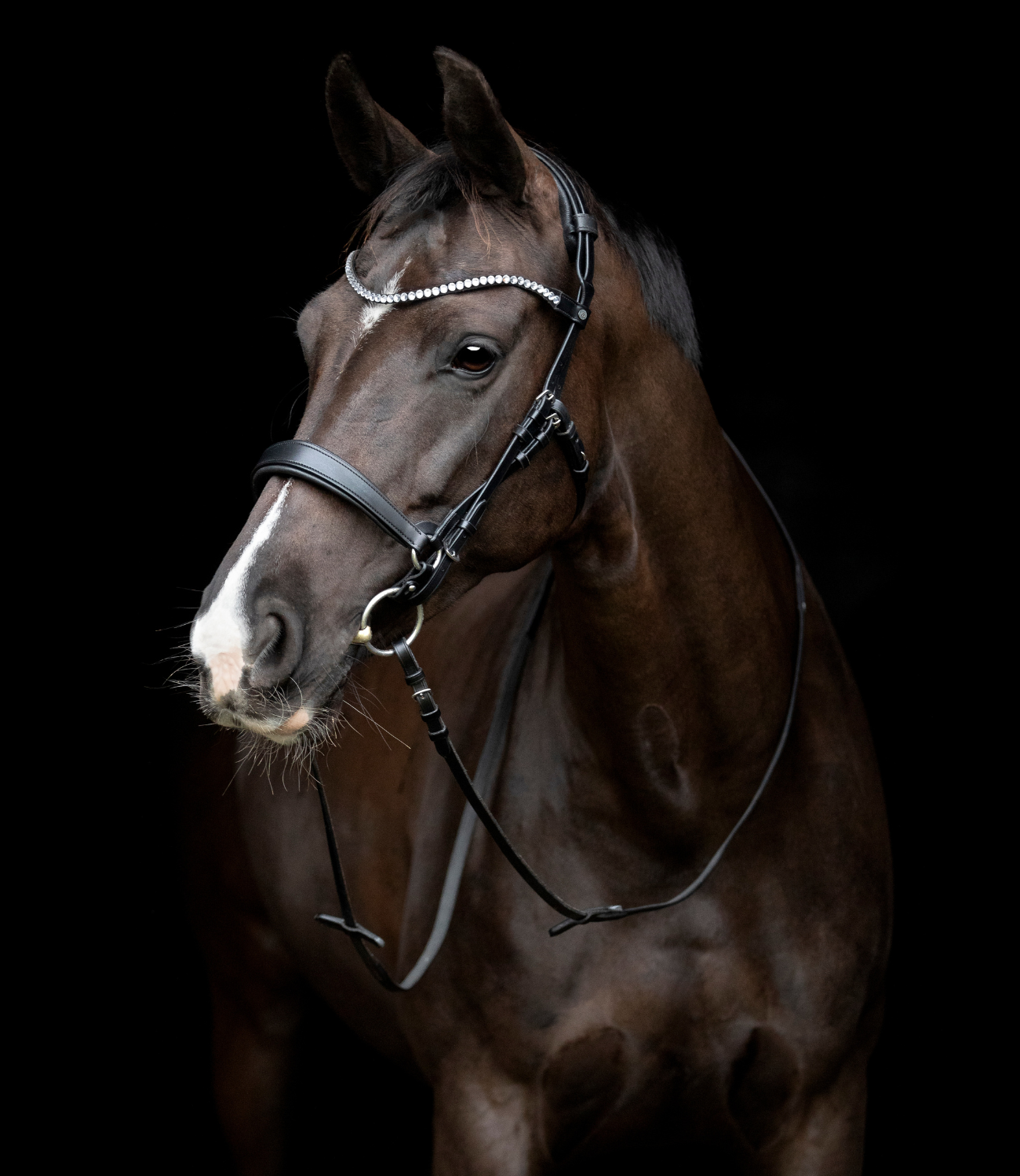 Measure from the noseband ring, along the cheekbone, to the outer corner of the eye.