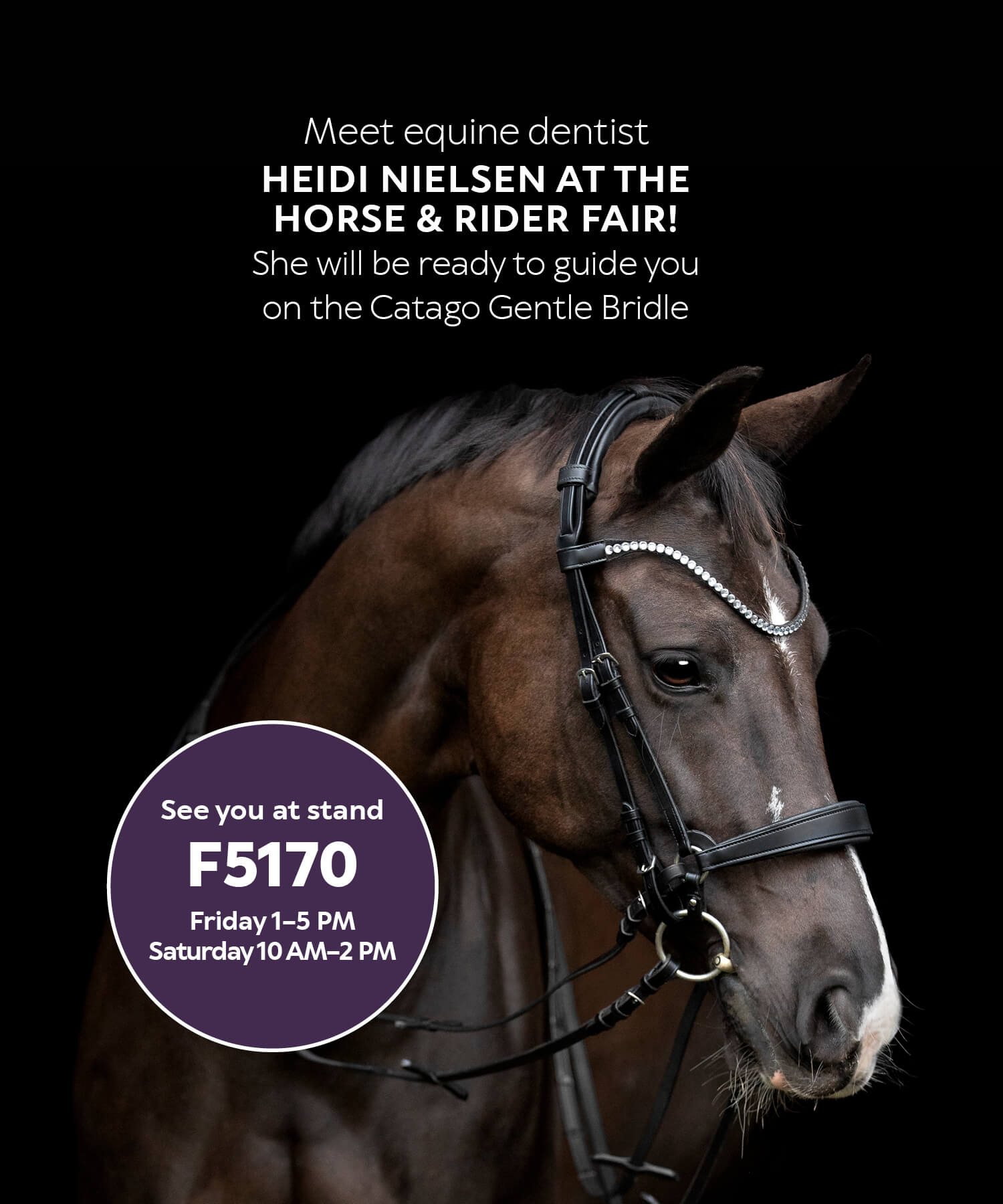 Catago Gentle Bridle, will be visiting our stand to demonstrate correct measuring and assembly of the bridle.
