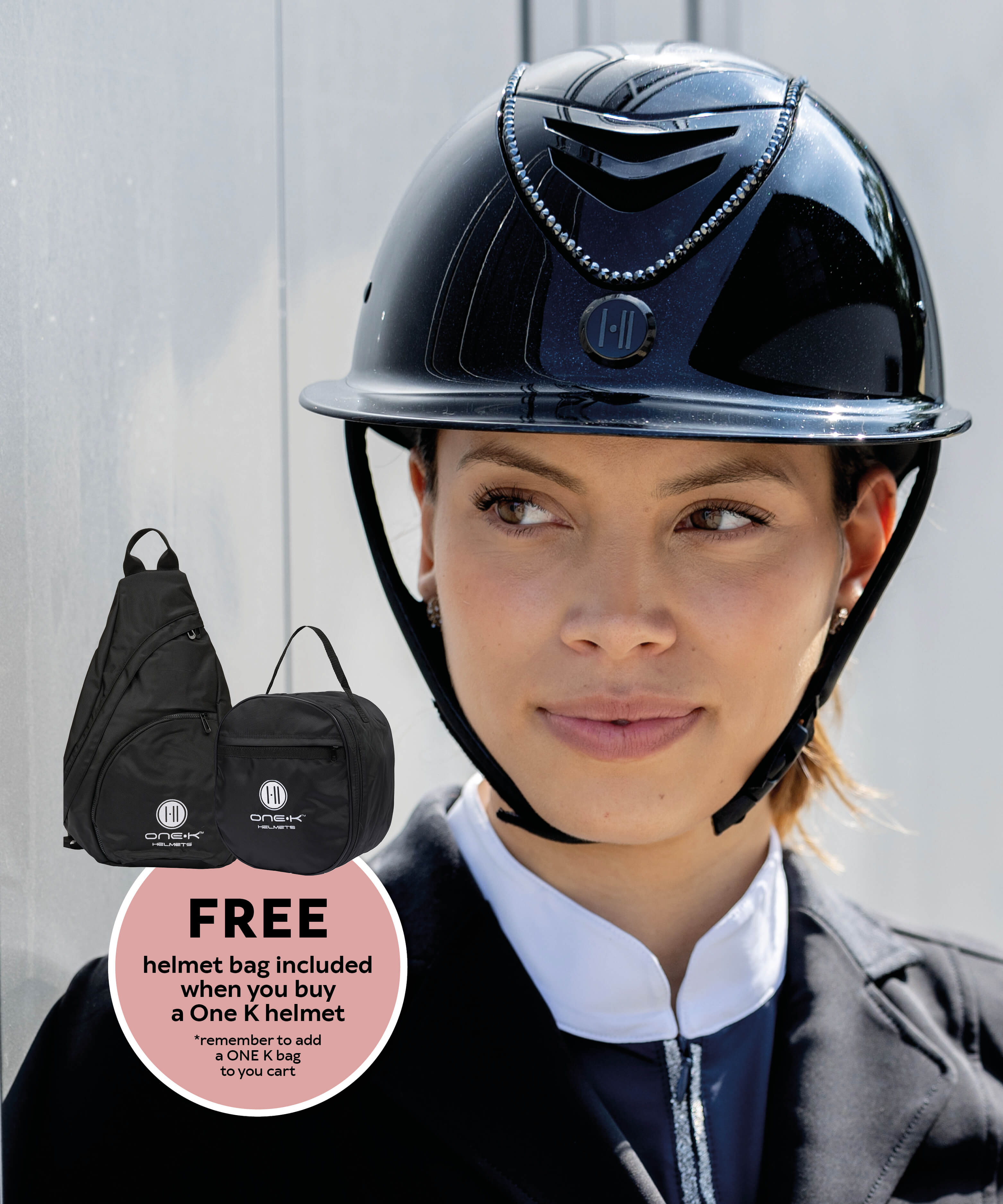 Buy a One K riding helmet and receive a free helmet bag.