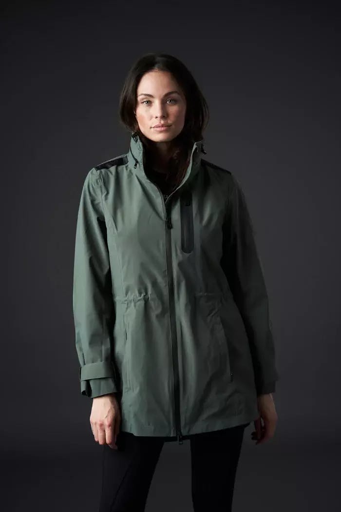 This riding jacket has a trench coat-like silhouette with a sporty touch of rubberized details. The hidden hood in the collar, which can be opened with a reverse rubberized zipper, is ready to protect you when the weather changes. The sleeve cuffs are adjustable with press studs so you can customize the fit to suit your needs.